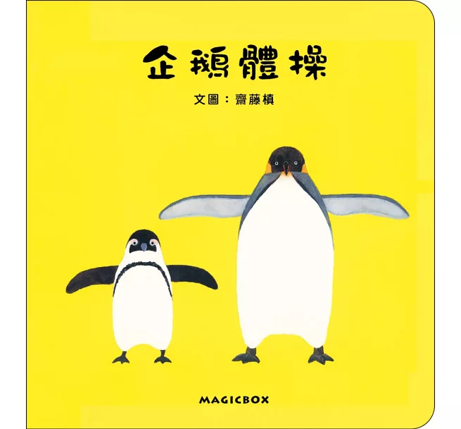 書中登場的兩隻企鵝,左邊的小企鵝是黑腳企鵝,右邊的大企鵝是國王企鵝,牠們一搭一唱的伸展肢體,模樣十分逗趣。
