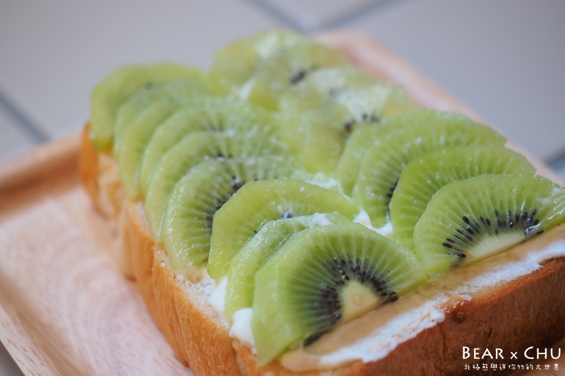 生吐司最近真的很紅,咖啡浴FURO CAFE也有這個品項,鹹甜口味都有,這個是加上鮮奶油和奇異果的「繽紛奇果」口味,生吐司吃起來柔軟中帶彈性,加上清爽的鮮奶油和酸甜奇異果,滋味挺不錯的。
