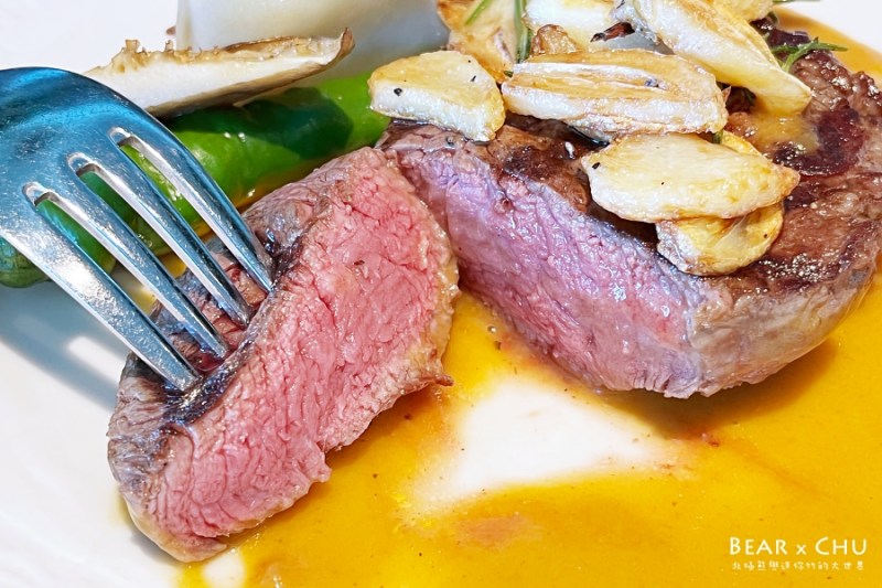 人氣主菜如碳烤紐西蘭菲力牛排佐蒜片紅酒醬,五分熟剛剛好,醬汁濃郁搭配肉質細緻,是高價值的選擇。另有低溫鮭魚青蘆筍與黃蔴菇,鮭魚搭配青蘆筍與奶油醬汁,鮮嫩細緻可口。